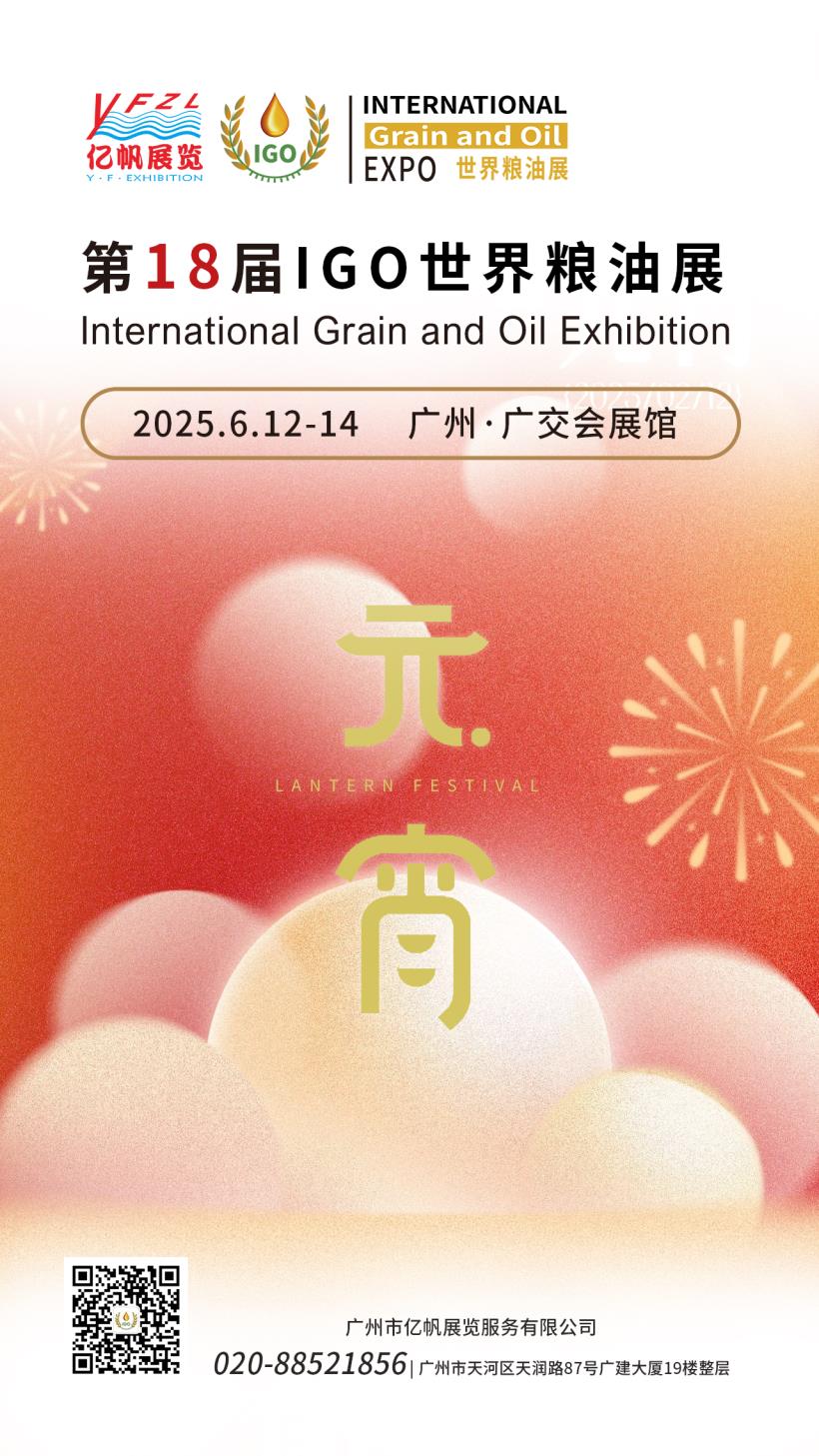 第19屆IGO世界糧油展會將于2026年6月4-6日在廣州?廣交會展館舉行, IGO世界糧油展會由廣州國際食用油及橄欖油產業(yè)博覽會(IOE油博會)、 廣州國際優(yōu)質大米及品牌雜糧展覽會(IRE大米展會)、 廣州國際糧油機械及包裝設備展覽會(IGME糧油機械展會)三大主題展組成。