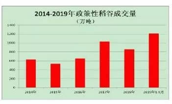 (三)拍賣底價連續(xù)大幅調(diào)低繼2018年下調(diào)最低收購價稻谷競價銷售底價后,2019年國家再次全面下調(diào)了競價銷售底價。其中,2015年產(chǎn)秈稻和粳稻的銷售底價較上年下調(diào)400~600元/噸;2016年至2017年產(chǎn)秈稻和粳稻分別較上年下調(diào)100元/噸和200元/噸;2013年至2014年產(chǎn)稻谷下調(diào)100~300元/噸。而新設(shè)立的專場銷售,秈稻和粳稻的拍賣底價分別為1500元/噸、1600元/噸,已低于玉米價格。